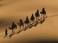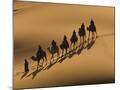Camel Caravan Riding Through the Sand Dunes of Merzouga, Morocco, North Africa, Africa