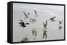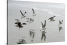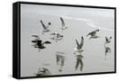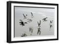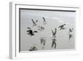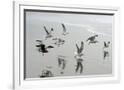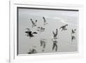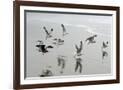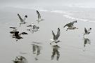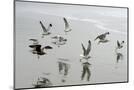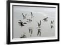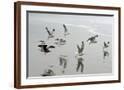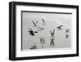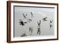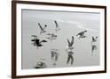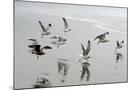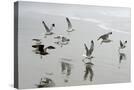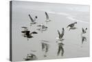 Canada, B.C, Vancouver Island. Gulls Flying on Florencia Beach