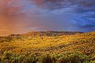 Canada, British Columbia, Cache Creek. Stormy clouds over prairie at sunrise.