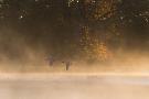 Canada Geese, Branta Canadensis, Fly over Pen Ponds in Richmond Park in Autumn