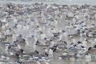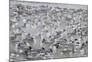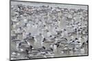 Canada Geese Flock on Frozen Lake at Sunrise, Marion, Illinois, Usa