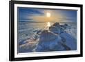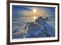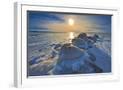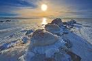 Canada, Manitoba, Winnipeg. Sunset on Lake Winnipeg spring ice.