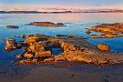 Canada, Ontario, Rossport. Rocky shoreline of Lake Superior at sunrise.