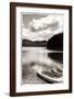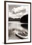 Canoe and Three Kayaks Sepia Photo Print