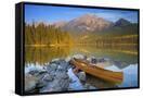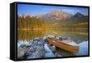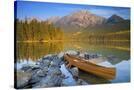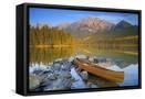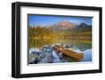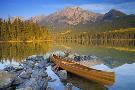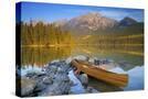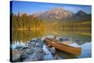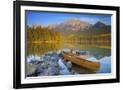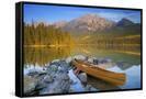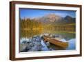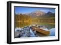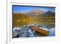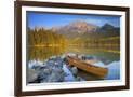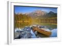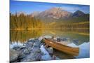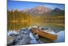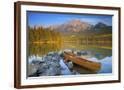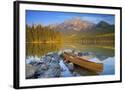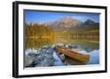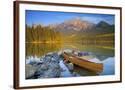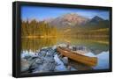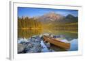 Canoe at Pyramid Lake with Pyramid Mountain in the Background Photo Print