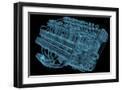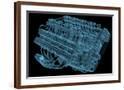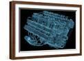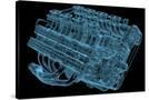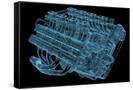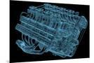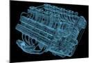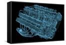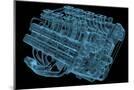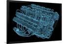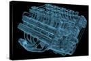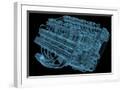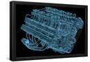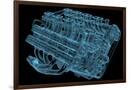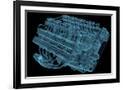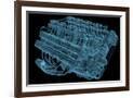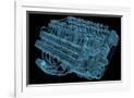 Car Engine X-Ray Blue Transparent Isolated on Black Wall Art Print