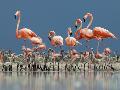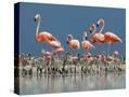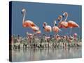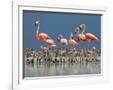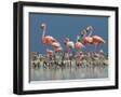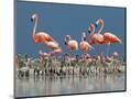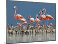 Caribbean Flamingo (Phoenicopterus Ruber) Adults Guarding Chick