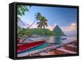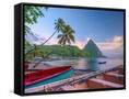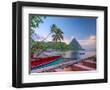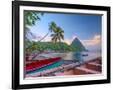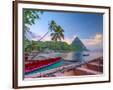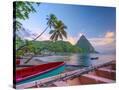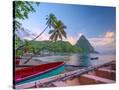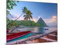 Caribbean, St Lucia, Soufriere Bay, Soufriere Beach and Petit Piton, Traditional Fishing Boats