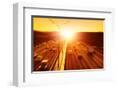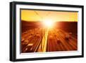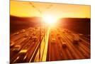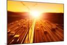 Cars in Motion Blur on Highway during Sunset. Photo Print