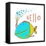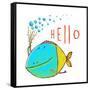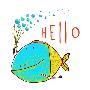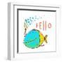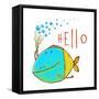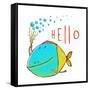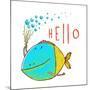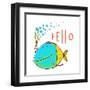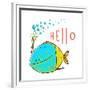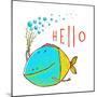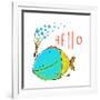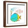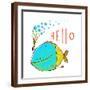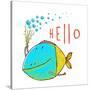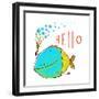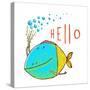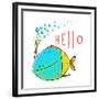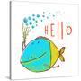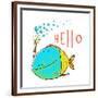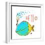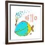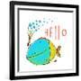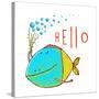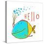 Cartoon Funny Fish Greeting Card Design Hand Drawn. Fun Cartoon Hand Drawn Colorful Fish with Bubbl