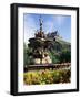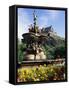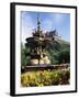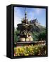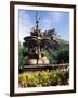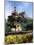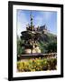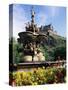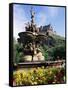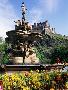 Castle and Princes Street Garden Fountain, Edinburgh, Lothian, Scotland, United Kingdom