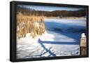 Cattails And Post In Snow Along Pond Giclee Wall Art