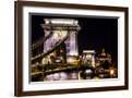 Chain Bridge, St. Stephens. Danube River Reflection, Budapest, Hungary Premium Photo Print