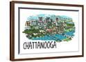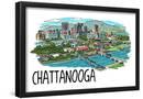 Chattanooga, Tennessee - Line Drawing - Lantern Press Artwork Wall Art Print
