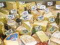 Cheese and Wine for Sale at Market, Florence, Tuscany, Italy