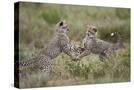 Cheetah (Acinonyx Jubatus) Cubs Playing, Serengeti National Park, Tanzania, East Africa, Africa