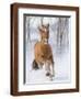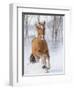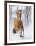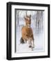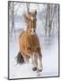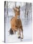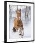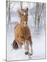 Chestnut Mustang Running In Snow, At Ranch, Shell, Wyoming, USA. February Photo Print