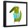 Childish Student Crocodile Reading Book and Study. Happy Fun Watercolor Style Animal Education for Wall Art Print