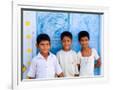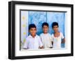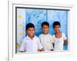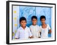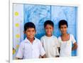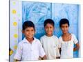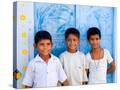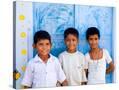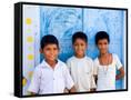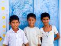 Children Against Blue Wall in Jaipur, Rajasthan, India