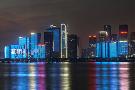China, Zhejiang, Hangzhou. City skyline at twilight.