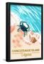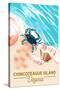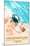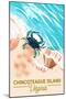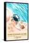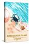 Chincoteague Island, Virginia - Blue Crab & Shells Wall Art Print