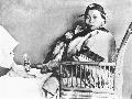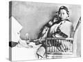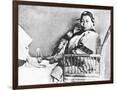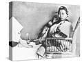 Chinese Woman Showing Her Uncovered Bound Foot Near an European Foot