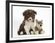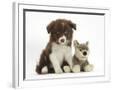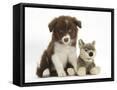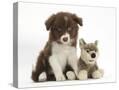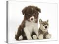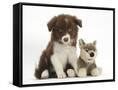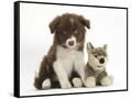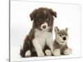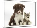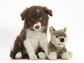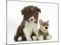 Chocolate Border Collie Pup and Wolf Soft Toy Photo Print