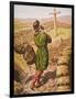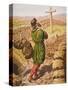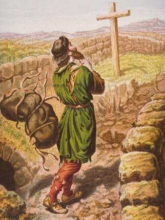 Christian Loses His Burden at the Cross, Illustration from 'The Pilgrim's Progress' by John…