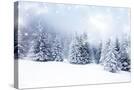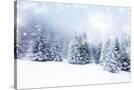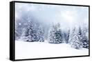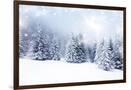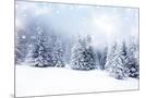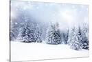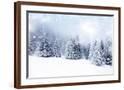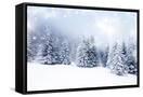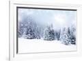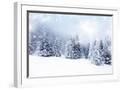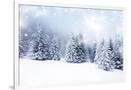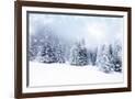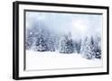 Christmas Background with Snowy Fir Trees Wall Art Print