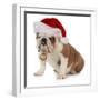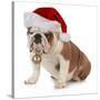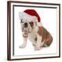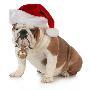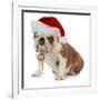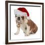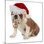 Christmas Dog - English Bulldog Wearing Santa Hat Holding Christmas Bell