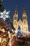 Christmas Market and Neo-Gothic Church of St. Ludmila, Mir Square, Prague, Czech Republic, Europe
