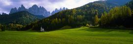Church and Mountains in Background, Santa Maddalena, Val De Funes, Le Odle, Dolomites, Italy