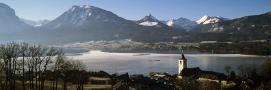 Church in a Village, Wolfgangsee, St. Wolfgang, Salzkammergut, Upper Austria, Austria