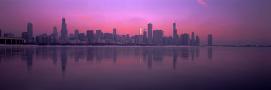 City skyline reflecting in Lake Michigan at dusk, Chicago, Illinois, USA