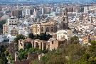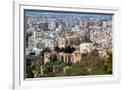 Cityscape view over city centre high density buildings with cathedral church in centre, Malaga