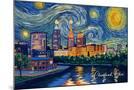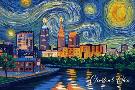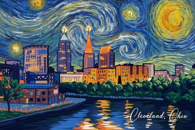 Cleveland, Ohio - Starry Night - City Skyline - Lantern Press Artwork