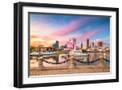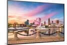 Cleveland, Ohio, USA downtown city skyline and harbor at twilight