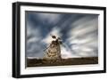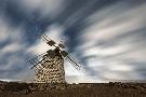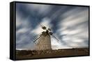 Clouds in the starry sky over a traditional windmill, La Oliva, Fuerteventura, Canary Islands