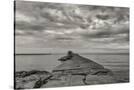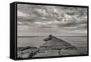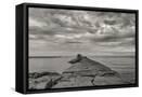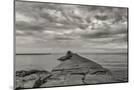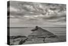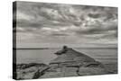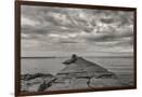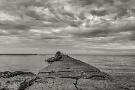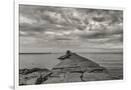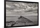Cloudscape Over Pier With Jagged Rocks B&W Giclee Wall Art