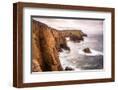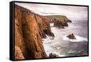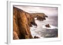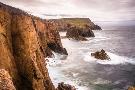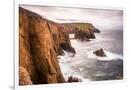 Coastal scenery with Enys Dodnan rock formation at Lands End, England