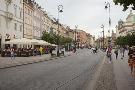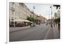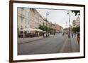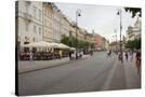 Cobbled Old Town Krakowskie Przedmiescie Street and street cafes, Warsaw, Poland, Europe