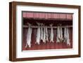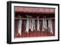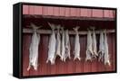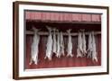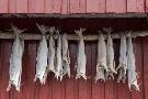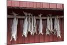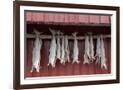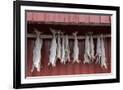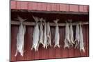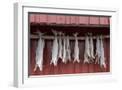 Cod drying on a wooden pole in Reine, Moskenesoy, the Lofoten Islands