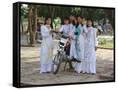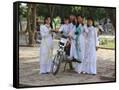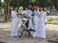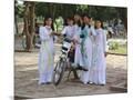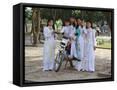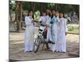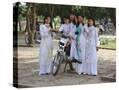 College Girls Wearing Traditional Ao Dai at West Lake on Graduation Day, Indochina, Southeast Asia