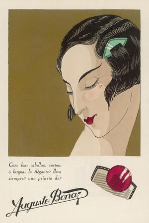 Colour Advertisement for a Hair Comb Worn in the Shingled Bob of an Elegant 1920s Lady