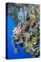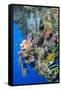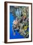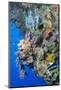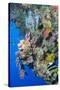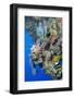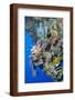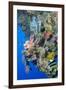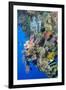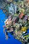 Colourful, Coral Covered Reef Wall at Osprey Reef, Longfin Banner Fish (Heniochus Acuminatus)