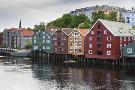 Colourful Wooden Warehouses on Wharf Beside the Nidelva River