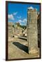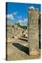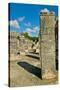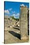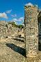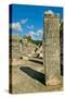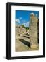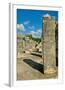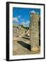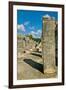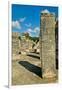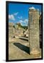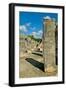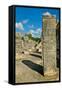 Columns with carved stonework on the Temple of the Warriors at the ancient Mayan city of Chichen... Photo Print