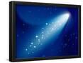 Comet on Dark Blue Sky with Small Sparkling Stars. Raster Version. Photo Print