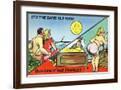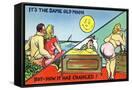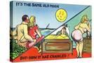 Comic Cartoon - Cute Couple; Same Old Moon, How it Has Changed Wall Art Print