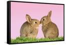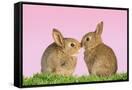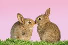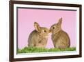 Common Rabbit Young Two Kissing with Pink Background Photo Print